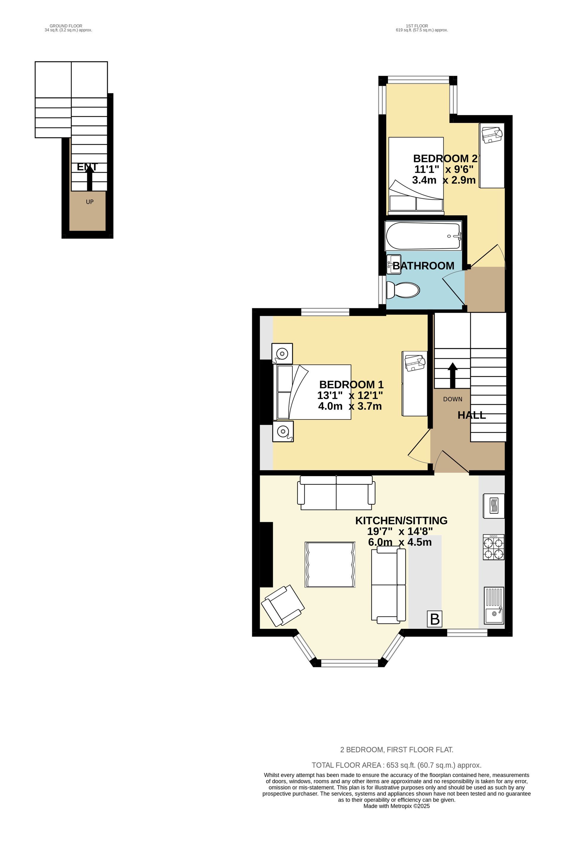 Bedroom 2 - 3.4m x 2.9m (11'1" x 9'6")