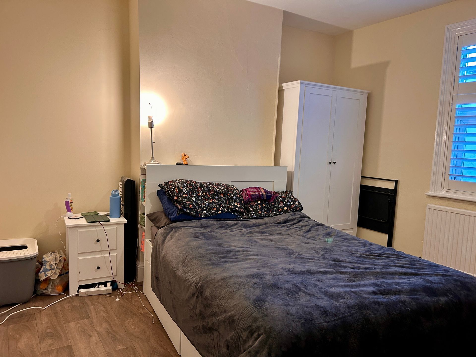 Bedroom one is a rear facing spacious double room, looking onto the rear garden, double glazed window with white slatted blinds and plenty of space for free standing furniture.